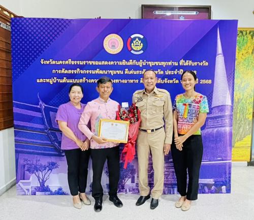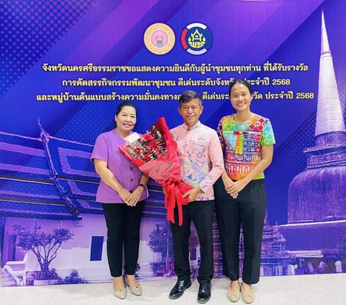 นางสาวนิชาภา ปานอ่อน พัฒนาการอำเภอจุฬาภรณ์ มอบหมาย ให้เจ้าหน้าที่พัฒนาชุมชนอำเภอ ร่วมแสดงความยินดีกับตำบลสามตำบล ที่ได้รับประกาศนียบัตร รองชนะเลิศอันดับที่ 2 ตำบลเข้มแข็งตามหลักปรัชญาของเศรษฐกิจพอเพียง ดีเลิศระดับจังหวัด ประจำปี 2568 โดย มี นายวิชาญ สุวรรณภักดี รองนายกองค์การบริหารส่วนตำบลสามตำบล เป็นตัวแทนรับมอบ จากนายสมชาย ลีหล้าน้อย ผู้ว่าราชการจังหวัดนครศรีธรรมราช