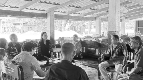 👩💼นางสาวนิชาภา ปานอ่อน พัฒนาการอำเภอจุฬาภรณ์ พร้อมด้วย เจ้าหน้าที่พัฒนาชุมชนอำเภอจุฬาภรณ์ ร่วมกับคณะกรรมการกองทุนแม่ของแผ่นดินบ้านคอกวัว หมู่ที่ 1 ตำบลนาหมอบุญ โดยมี นางสมศรี เขียวกระจ่าง ผู้ใหญ่บ้านฯ และคณะกรรมการกองทุนแม่ของแผ่นดินบ้านคอกวัว ประชุมเตรียมความพร้อมพิธีสมโภชกองทุนแม่ของแผ่นดิน เพื่อจัดงานเลี้ยงน้ำชา หารายได้สมทบเข้ากองทุนแม่ของแผ่นดิน