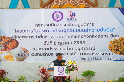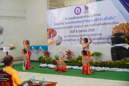 นางสาวนิชาภา ปานอ่อน พัฒนาการอำเภอจุฬาภรณ์ พร้อมด้วยเจ้าหน้าที่พัฒนาชุมชน ร่วมประสานงานการจัดกิจกรรมฝึกอบรมเชิงปฏิบัติการ โครงการ "ยกระดับเศรษฐกิจชุมชนสู่ความยั่งยืน" หลักสูตรการทำการติ่มซำ ซาลาเปา และแกงคั่วกลิ้ง อัดกระป๋อง โดยมี ดร. ธนกร วังบุญคงชนะ รัฐมนตรีกระทรวงอุตสาหกรรม เป็นประธานในพิธีเปิด โดยมีนางสาวณัฏฐิญา เนตยสุภา กล่าวรายงาน นายสมชาย ลีหล้าน้อย ผู้ว่าราชการจังหวัดนครศรีธรรมราช กล่าวต้อนรับ
