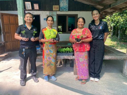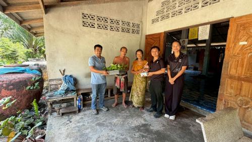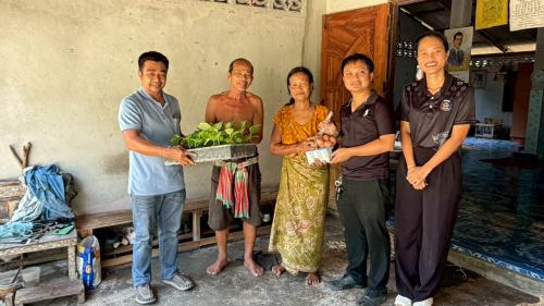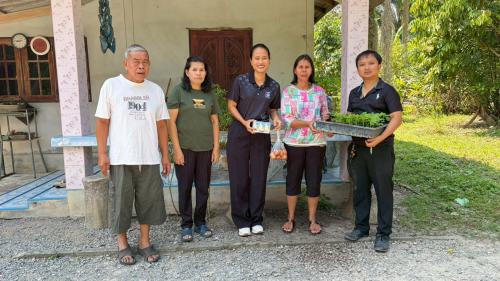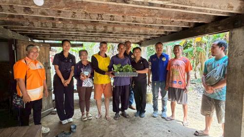 นางสาวนิชาภา ปานอ่อน พัฒนาการอำเภอจุฬาภรณ์ มอบหมายให้เจ้าหน้าที่พัฒนาชุมชนอำเภอจุฬาภรณ์ และผู้นำชุมชน ผู้นำสตรี ลงพื้นที่เยี่ยมเยียนให้กำลังใจครัวเรือนในพื้นที่ หมู่ที่ 1, 3, 6, 8 ตำบลทุ่งโพธิ์ เพื่อขับเคลื่อนกิจกรรมส่งเสริมครัวเรือนมีรายได้น้อย น้อมนำหลักปรัชญาเศรษฐกิจพอเพียงสู่การดำเนินชีวิต ปลูกผักสวนครัวสร้างความมั่นคงทางอาหาร โดยมอบต้นพันธุ์ผักสวนครัว เช่น พริก มะเขือ มะละกอ และเมล็ดพันธ์ุผักบุ้ง จำนวน 4 ครัวเรือน เพื่อส่งเสริมให้เกิดการพึ่งพาตนเอง ลดรายจ่าย สร้างรายได้ และพัฒนาศักยภาพแก้ไขปัญหาความยากจนอย่างยั่งยืน